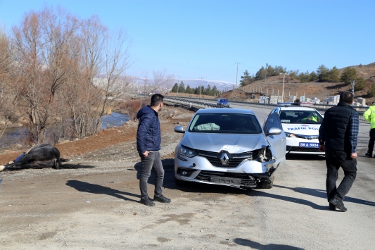 Çarpmanın şiddetiyle yol kenarına savrulan at telef oldu.