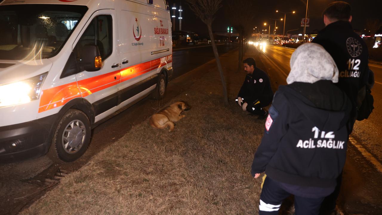 Ambulans şoförü Sedat Kaya, gazetecilere yaptığı açıklamada, önlerinde giden otomobilin çarpması sonucu köpeğin yaralandığını söyledi.