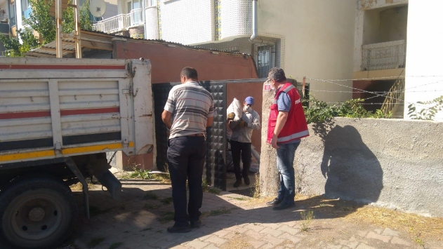 Daha sonra evlere giden ekipler, kömürleri kamyona yükleyerek vakfa getirdi.