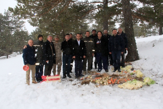 Kaymakamı Çağlar Partal, kar yağışının etkisini sürdürdüğü, kar kalınlığının yer yer 1,5 metreye ulaştığı bölgede gazetecilere yaptığı açıklamada, doğaya yem bırakmaktan mutlu olduklarını belirtti.