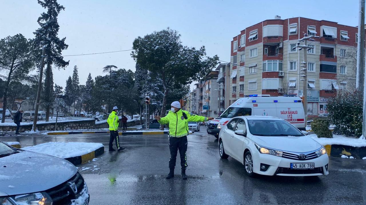 Soma-Savaştepe kara yolu üzerinde yer alan Yağcıllı Mahallesi güzergahında da karla mücadele çalışmaları aralıksız sürerken İlçe Emniyet Müdürlüğü Trafik Şube Amirliği ekipleri Savaştepe ve Kırkağaç kara yolu Soma girişi kavşakları ile ilçe merkezinde trafiğin aksamaması için uygulama yaparak buzlanmaya karşı sürücüleri uyardı.