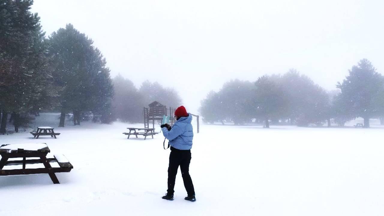 Spil Dağı Milli Parkı'na çıkan yolda Sultan Yaylası mevkiinden itibaren karla kaplanan Spil Dağı'nda bin 210 metre rakımlı Milli Park sahasında yer alan Atalanı günübirlik piknik alanı mevkiinde kar kalınlığı 10 santimetreye ulaştı.
