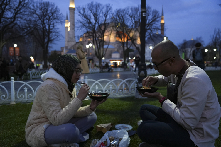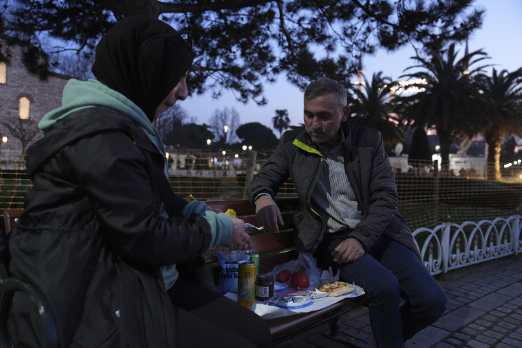 Vatandaşlar, meydandaki çimenliklere ve banklara serdikleri sofra bezlerinin üzerine, evlerinden getirdikleri veya çevredeki esnaftan paket halinde aldıkları yiyecekleri çıkararak, iftar saatini bekledi.