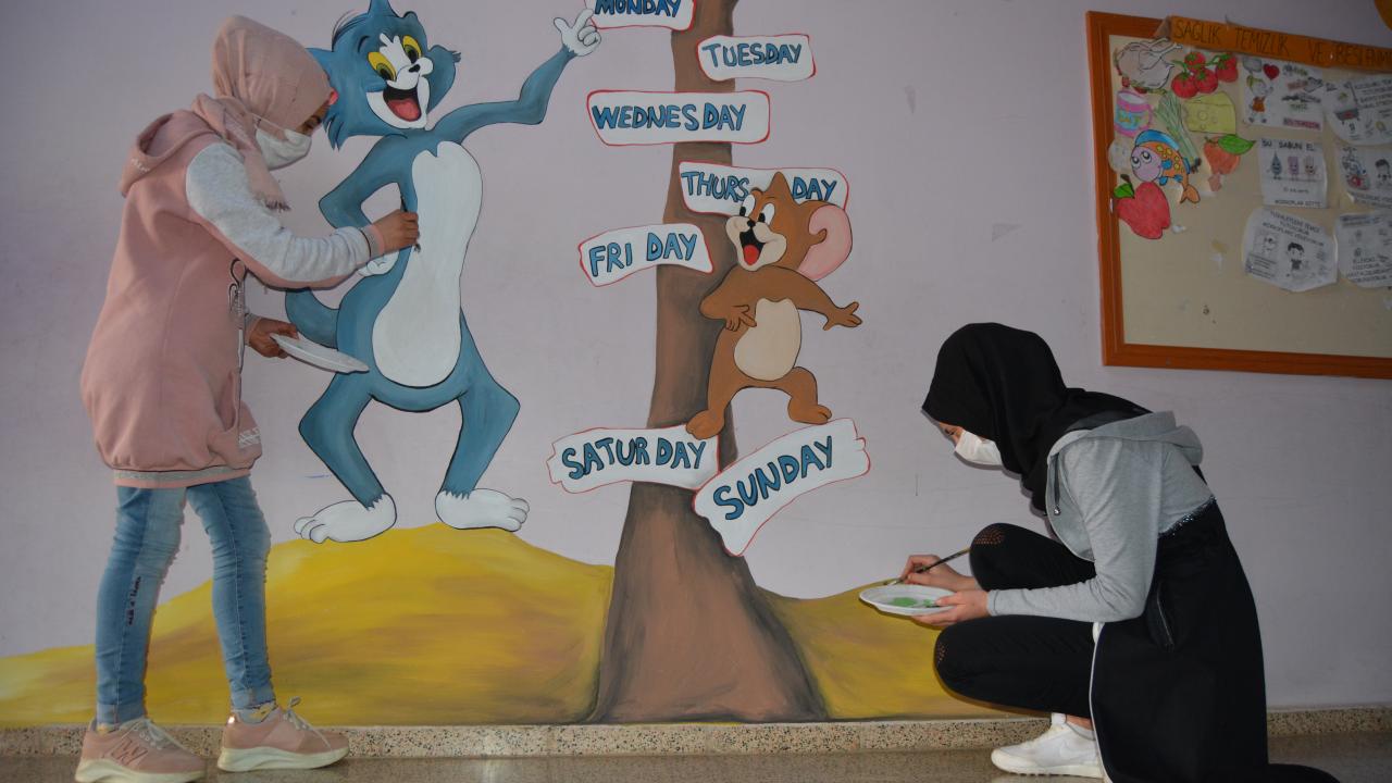 İslahiye ilçesindeki Pınarbaşı İlk ve Ortaokulu görsel sanatlar öğretmeni Ayşegül Gemli, bir yıl önce 4 katlı okulun koridorları ve diğer görselliği bulunan alanlara resimler çizmek amacıyla okul yönetimiyle Minik Ressamlar Projesi'ni hayata geçirdi. Yeni tip koronavirüs (Kovid-19) salgınının başlamasıyla okullar geçici olarak yüz yüze eğitime ara verilince 9'u Suriyeli 15 öğrenciyle başlanan projeye ara verildi.