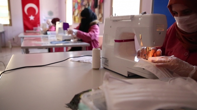 Yetim Vakfı Reyhanlı Eğitim Köyü bünyesindeki tekstil ve tasarım atölyesinde çalışan 10 Suriyeli yetim annesi ve iki personel, bir haftada 6 bin 400 maske üretimi yaptı.