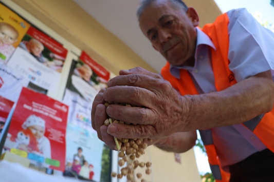 Nohutları temizledikten sonra vakfın yemekhanesine göndermek için özenle çuvallayan Acar, lösemili çocukların beslenmesine az da olsa katkı sağlamanın mutluluğunu yaşıyor.