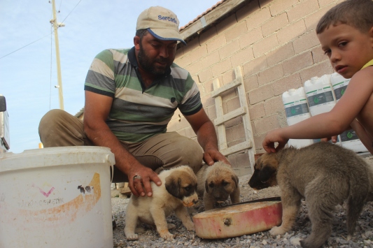 Zengin, sıcaktan ve açlıktan bitkin düşen yavru köpekleri, karınlarını doyurduktan sonra Karapınar Belediyesi Hayvan Barınağına teslim etti.