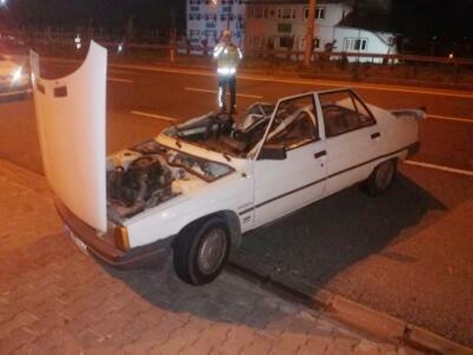 Çarpışmanın şiddetiyle tavanı kopan otomobil hurdaya döndü.