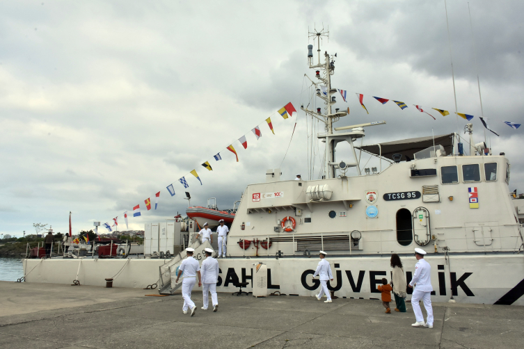 Ortahisar ilçesindeki Faroz Limanı'na demirleyen gemiyi ziyaret için gelen vatandaşlara, görevliler tarafından bilgi verildi.