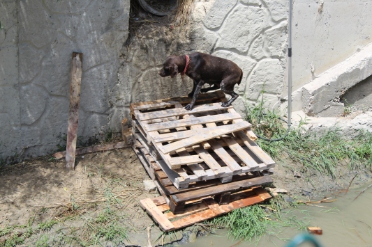 Ekipler, kısa çalışma sonucu köpeği kurtararak, yavrularının yanına bıraktı.