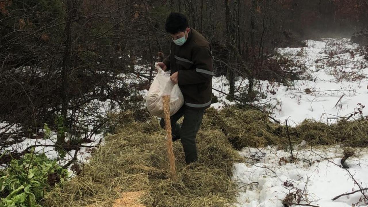 Tekirdağ Doğa Koruma ve Milli Parklar Şube Müdürlüğü ekipleri, kış nedeniyle doğada açlık tehlikesi yaşayan yaban hayvanları için yemleme çalışması başlattı.