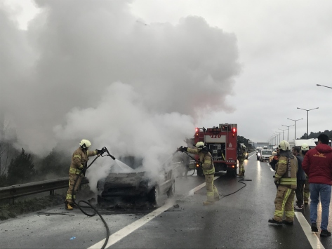 Yangının başladığı araçtaki sürücü ve akrabalarının yangını fark ederek araçtan inmesi olası bir faciayı önledi. Alev alan yanan otomobil kül olurken, TEM Otoyolu Kadıköy yönünde trafik oluştu.