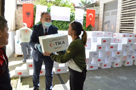 TİKA, Arnavutluk'un farklı şehirlerinde Roman ve Mısırlı ailelerin yanı sıra yetim ve ihtiyaç sahiplerine toplamda 3 bin 500 yardım paketi dağıtacak.