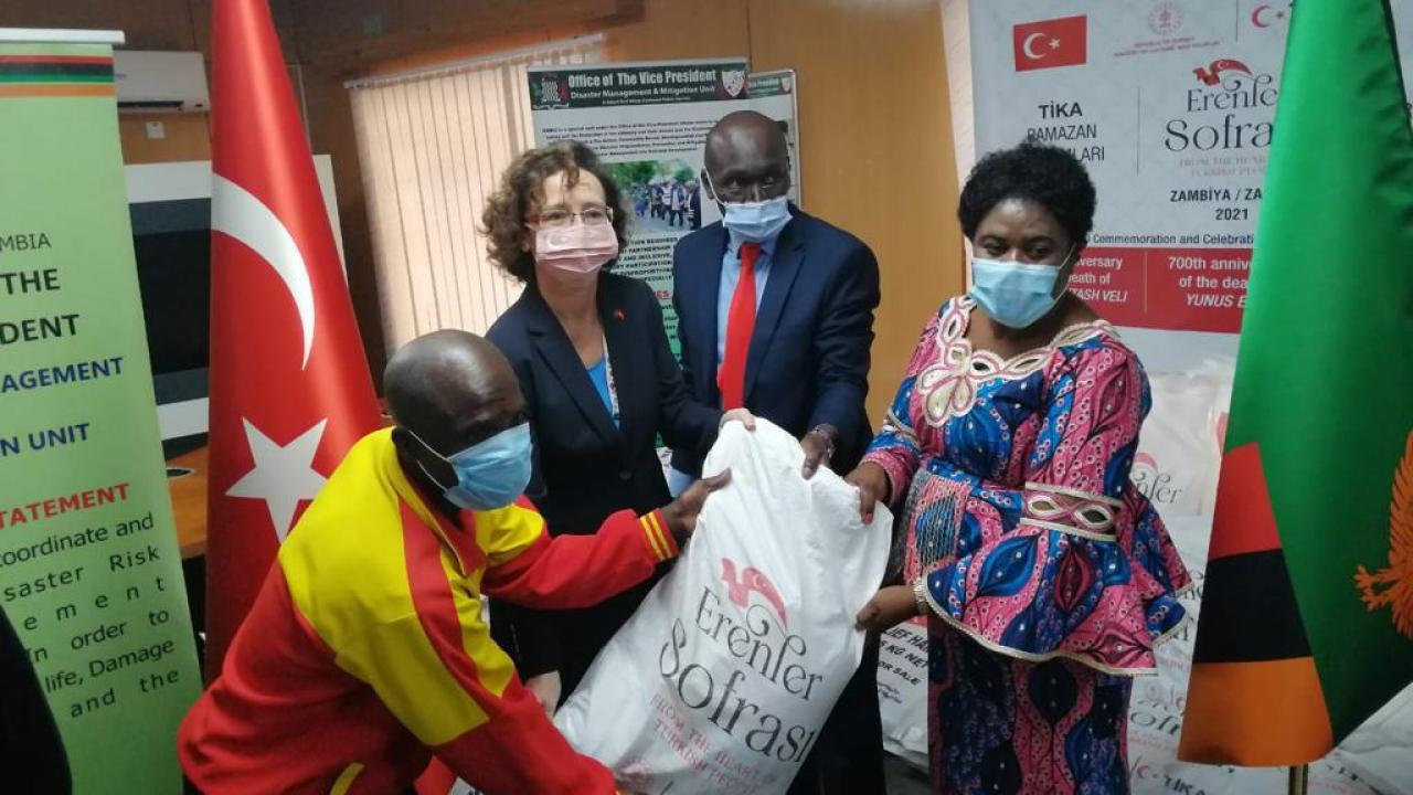 TİKA tarafından yapılan açıklamaya göre, başkanlığın hazırladığı gıda kolileri, Zambiya Afet Yönetimi ve Yardımları Ofisine (DMMU) törenle teslim edildi.