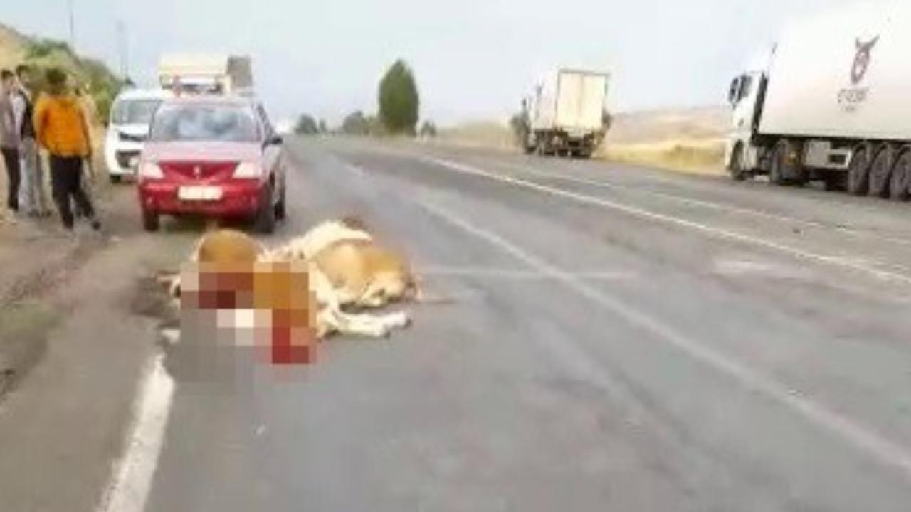 Tır şoförü yolun ıslak ve kaygan olmasından dolayı frenlerinin tutmadığını belirtirken, sürü sahibi büyük bir şok yaşadı.