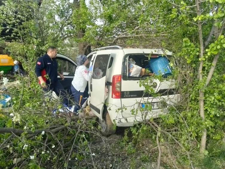 Ercan Karaduman yönetimindeki hafif ticari araç, D-100 kara yolu Hacıpazar köyü kavşağında yoldan çıkarak ağaca çarptı.