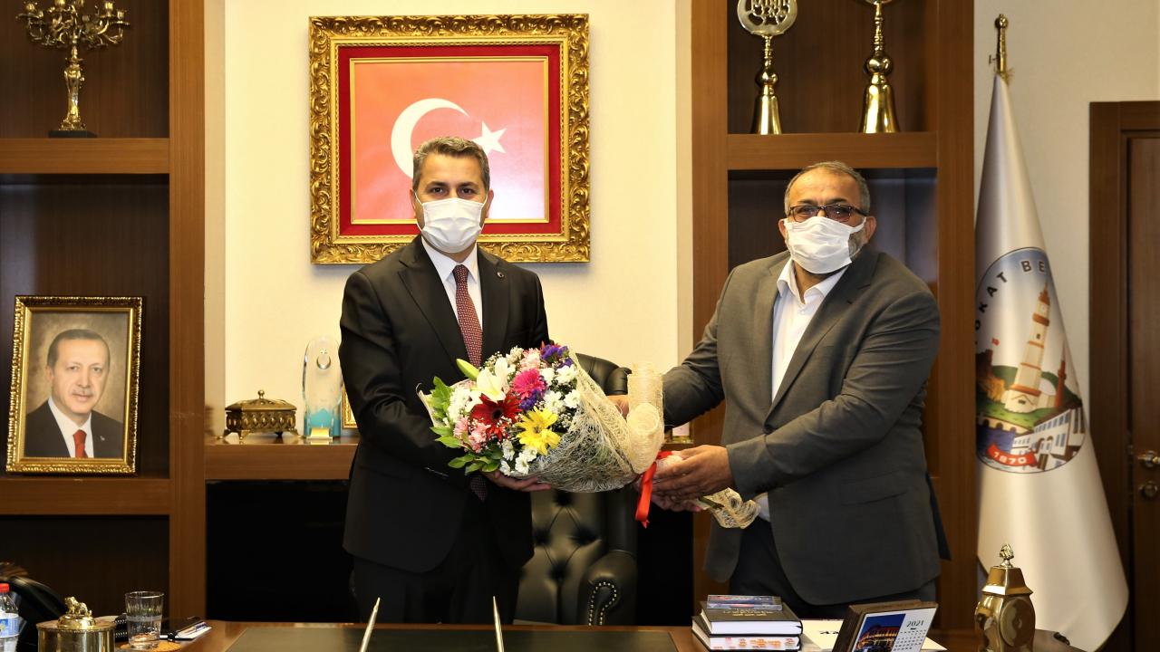 Tokat Çevre ve Şehircilik İl Müdürü Ali Yılmaz ve beraberindekiler 5 Haziran Dünya Çevre Günü dolayısıyla Belediye Başkanı Eyüp Eroğlu'nu makamında ziyaret ettiler.