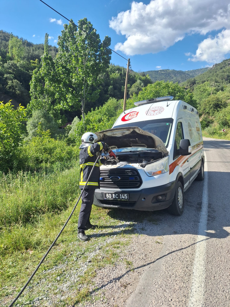Niksar-Ünye kara yolunda seyir halindeki ambulansın motor kısmında yangın çıktı.