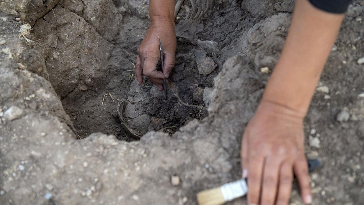 "Burada sit alanlarının sınırlarını belirlemeye çalışıyoruz. Yüzey toprağının hemen altından arkeolojik kalıntılar çıkmaya başladı. Kazının üçüncü gününde bir insan iskeleti açığa çıktı. Çocuk yaşlarda bir bireye ait. Toprağa açılan oval biçimli bir çukura büzülmüş biçimde yatırılmış bir birey, kuzey ve güney doğrultuda uzatılmış. Bu iskelet eski topluma ait ve o döneme ilişkin doğrudan bize bilgi sağlayan kalıntı olduğu için çok önemli."