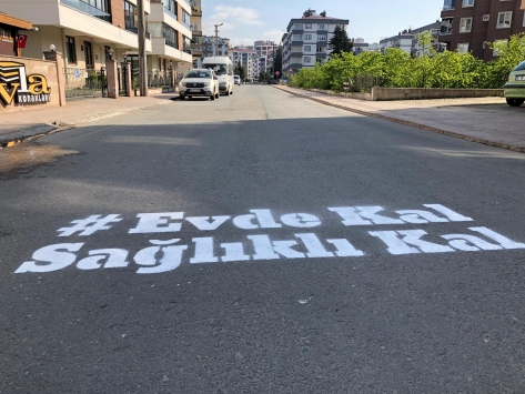 Altınordu Belediyesi de cadde ve sokakları "Evde kal sağlıklı kal" yazılarıyla donattı.