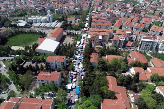 Halk pazarında ise öğle saatlerinden itibaren insanların yoğunluk oluşturduğu görülüyor.