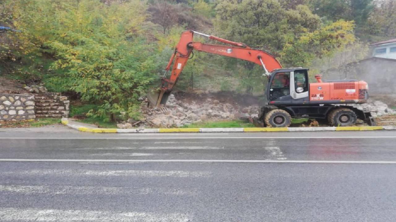 Belediye ve İl Özel İdaresiyle yapılan çalışmayla Cumhuriyet ve Moğultay mahallelerinde bulunan 3 metruk bina iş makineleri desteğinde yıkıldı.