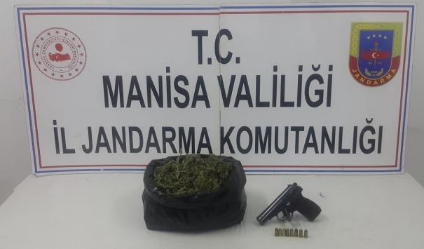 Manisa'nın Turgutlu İlçesinde jandarma ekiplerinden alınan bilgilere göre, Turgutlu İlçe Jandarma Komutanlı ekipleri, yol kontrol sırasında R.Ö. (37) idaresindeki otomobili durdurdu. Otomobilde yapılan aramada, koltuk altına gizlenmiş poşet içerisinde 600 gram kubar esrar, 1 adet tabanca, 8 adet fişek ele geçirildi.