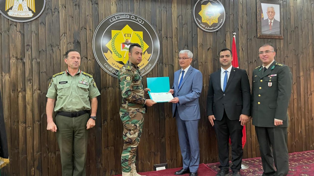 Filistin Askeri Eğitim Merkezinin Batı Şeria'nın Eriha kentindeki kampüsünde gerçekleştirilen törene, Türkiye'nin Filistin nezdindeki Kudüs Başkonsolosu Büyükelçi Ahmet Rıza Demirer, Filistin Askeri Eğitim Merkezi Komutanı Tuğgeneral Bassam el-Cerbi, Kudüs Yunus Emre Kültür Merkezi Müdürü Reha Ermumcu, askeri danışman Yüzbaşı Kıvanç Köseoğlu, Kudüs Başkonsolosluğu Ticari Ataşesi Sabahaddin Tarhan ve kurstaki öğrenciler katıldı.