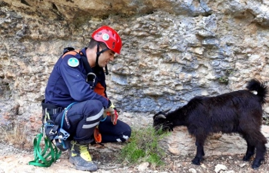 İtfaiye Dairesi Başkanlığı Afet Arama ve Kurtarma Şube Müdürlüğünce yapılan çalışma sonucunda, kayıp keçilerin 50 metrelik uçurumda mahsur kaldığı belirlendi.