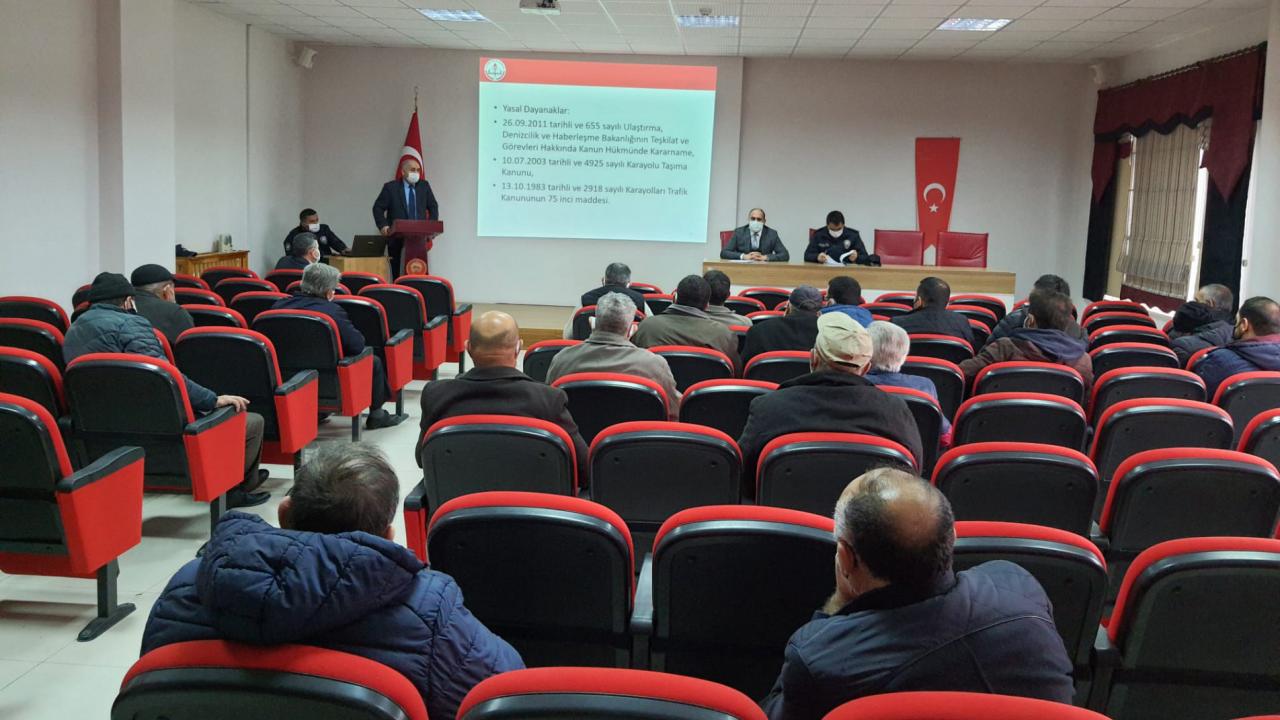 Kaymakamlık konferans salonundaki seminerde servis sürücüleri, taşımada güvenli ve düzenli trafik ortamı sağlanması, trafik güvenliğini artırıcı önlemlerin alınması konusunda bilgilendirildi.