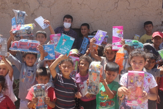 "Köyde yaşayan bir arkadaş, bana sosyal medyadan ulaşarak köydeki çocuklara oyuncak dağıtmamı talep etti. Bunun üzerine, 430 hikaye kitabını ve 276 oyuncağı köylerde yaşayan oyuncaksız çocuklara dağıtmaya geldik. Bugün Suruç'ta kırsal Saygın, Bilge, Bostancılar ve Kanatlı mahallelerinde oyuncakları dağıttık. Destek olan herkese teşekkür ediyorum."