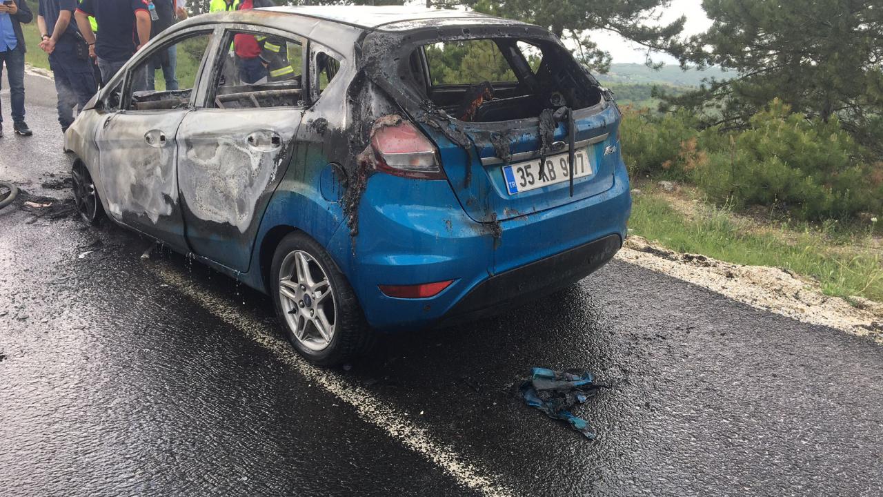 Otomobili sağa park eden E.B, araçtan indi. Çevredekilerin ihbarı üzerine olay yerine gelen itfaiye ekibi, alev alan otomobile müdahale etti.