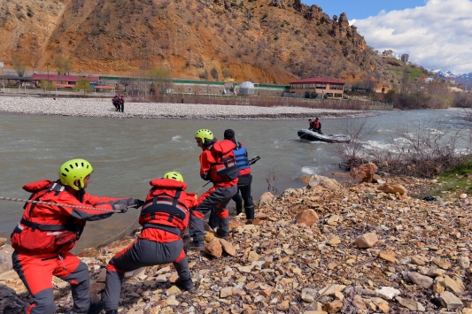 [Fotoğraf: AA]Tunceli'de 17 Mart'ta JAK timlerinin Munzur Çayı'nın Anafatma mevkisindeki görev öncesi yaptığı tatbikat sırasında botun devrilmesi sonucu suya düşen arama kurtarma timindeki 4 askeri personelden 3'ü kendi imkanlarıyla kurtulmuş, Jandarma Uzman Çavuş Yılmaz Güneş akıntıya kapılarak kaybolmuştu.