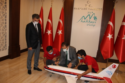 Bir süre sohbet ettiği Tatlı'ya altın hediye ederek tasarladığı uçağı imzalayan Akbıyık, gazetecilere yaptığı açıklamada, Tatlı'nın tasarladığı uçak ile Gaziantep'te gerçekleştirilen TEKNOFEST 2020'de Hakkari'yi temsil ettiğini söyledi.