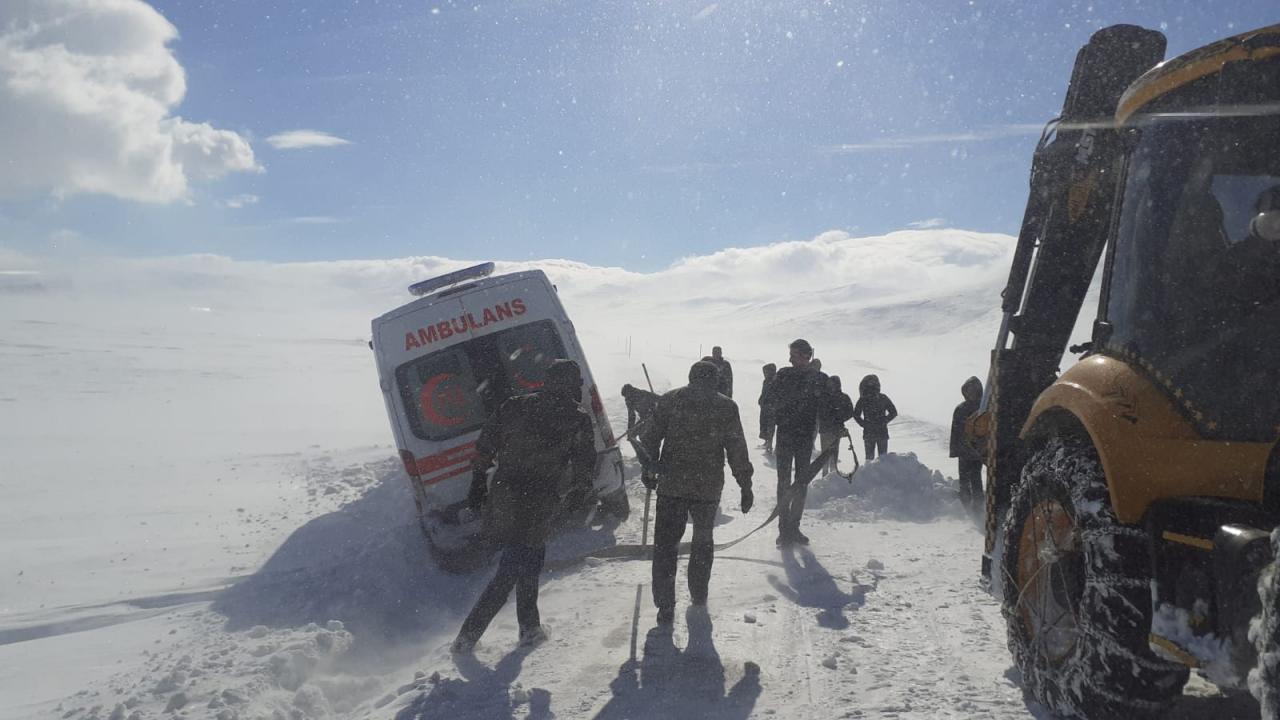 Durumun haber verilmesi üzerine bölgeye yönlendirilen Çaldıran Belediyesi karla mücadele ekipleri, uzun uğraşlar sonucu ambulansı bulunduğu yerden çıkardı.