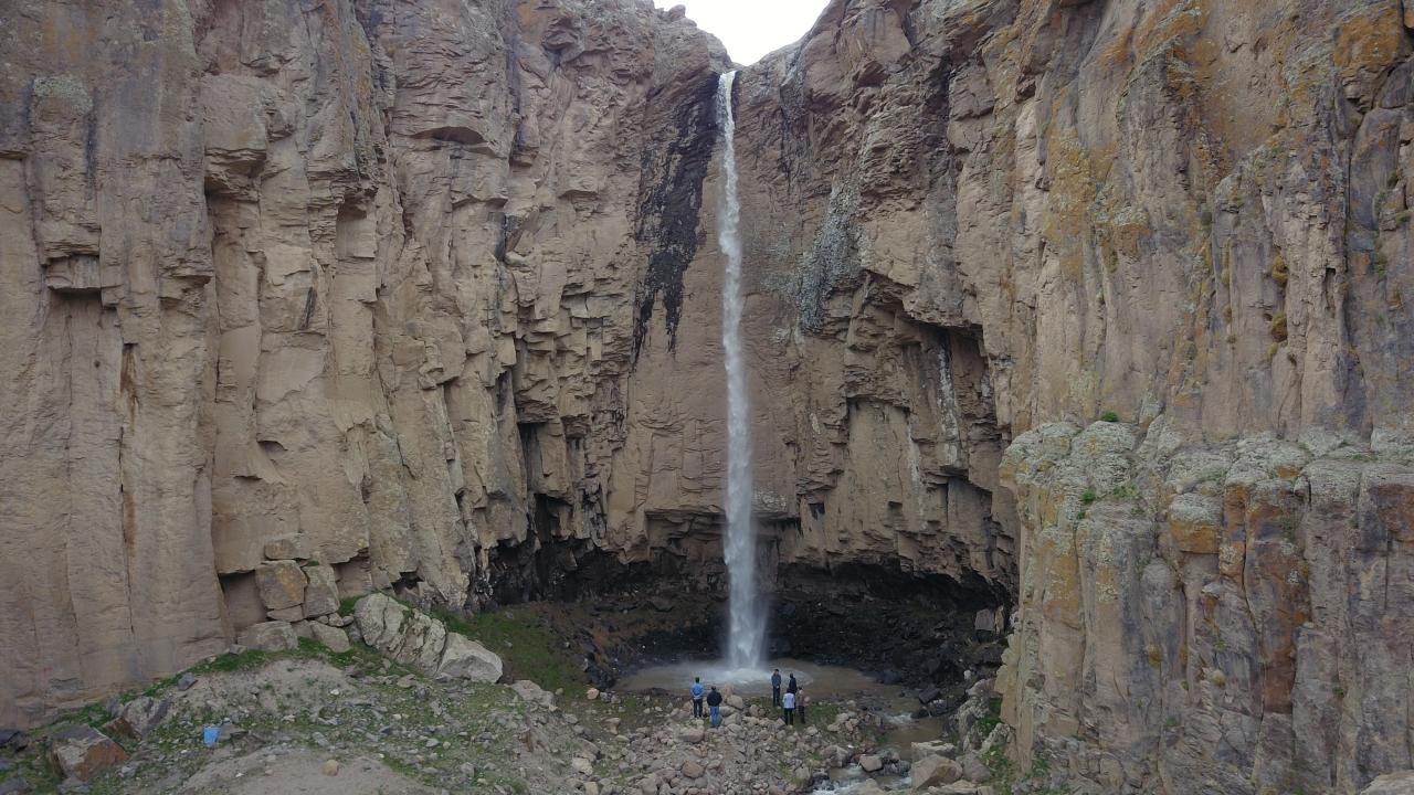 İlçeye 20 kilometre mesafedeki Muradiye Kanyonu'nda bulunan ve yılda sadece bir ay akan şelale, havaların ısındığı bu günlerde ziyaretçilerini cezbediyor.
