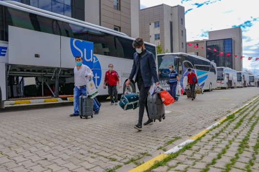 Karantina sürecinde tüm ihtiyaçları devlet tarafından karşılanan vatandaşlar, otobüslerle memleketlerine gönderildi.