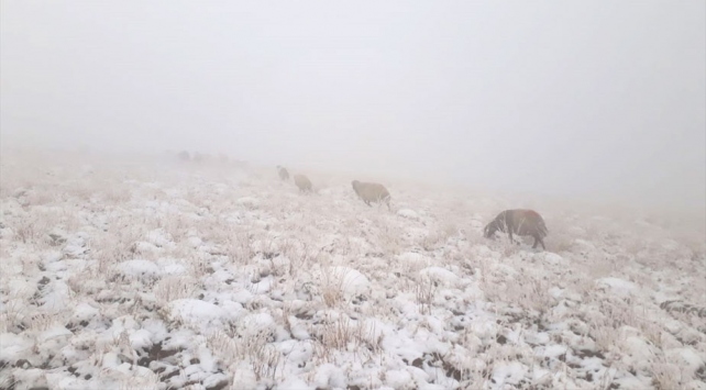 Küçükbaş hayvanlarını otlatmaya götüren besiciler de kar nedeniyle zor anlar yaşadı.