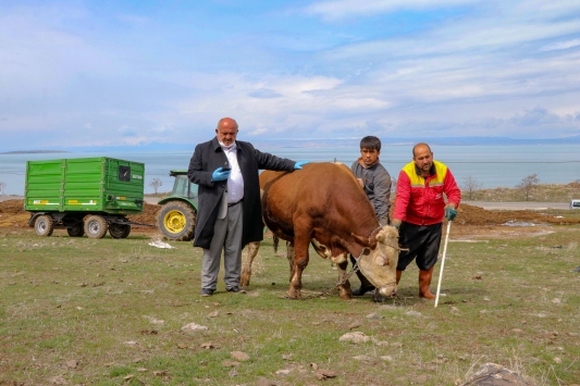 Ailesinin de destek verdiği Sezgin Esici, özenle yetiştirdiği hayvanını mahalleye giden valilik ekiplerine teslim etti.