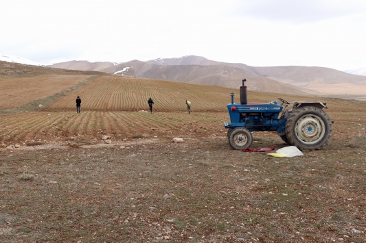 Van'da çiftçiler, tarımsal üretimin yeni tipi koronavirüs (Kovid-19) nedeniyle sekteye uğramaması için yıllardır boş bıraktıkları arazilerini ekmeye başladı.