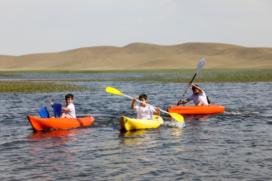 Dernek üyeleri, Urartu Kralı II. Rusa tarafından Erek Dağı eteğinde küçük bir akarsuyun önünün kapatılmasıyla oluştuğuna inanılan ve sulama barajı özelliği taşıyan gölde kanoya binip yüzdü.