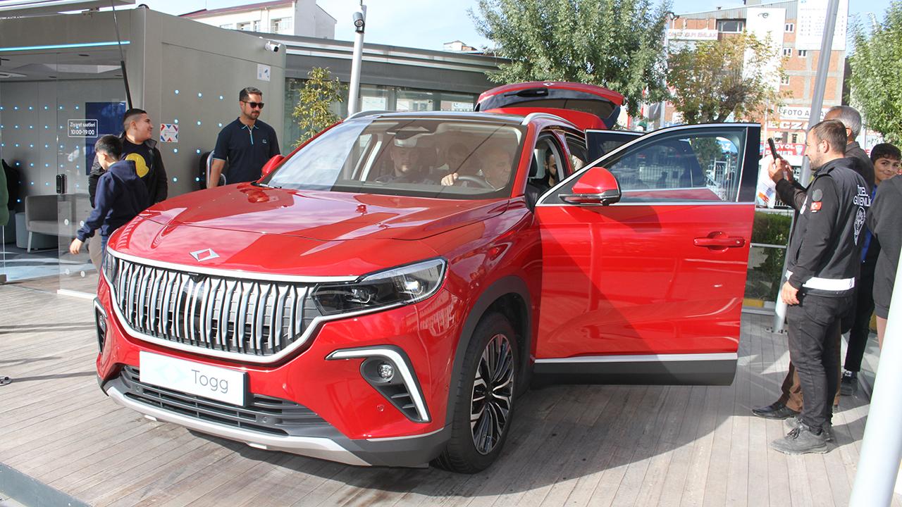 Valilik bahçesinde kurulan merkezde Togg'un T10X modelinin "Gemlik mavisi", "Oltu siyahı" ve "Anadolu kırmızısı" renklerindeki araçları sergileniyor.