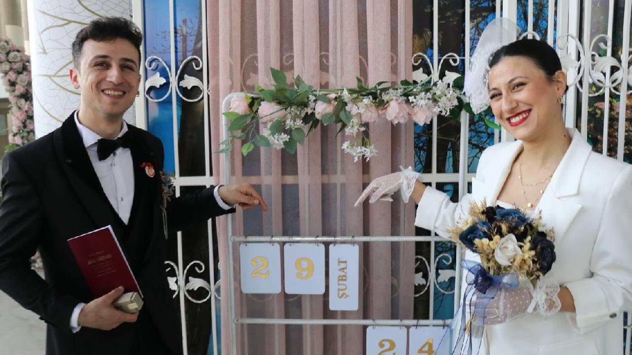 Yalova Belediye Başkanı Mustafa Tutuk'un kıydığı nikahla dünyaevine giren çiftten Haydar Kaynarpınar, gazetecilere, nikah tarihlerinin unutulmaz olması için 29 Şubat'ı seçtiklerini söyledi.
