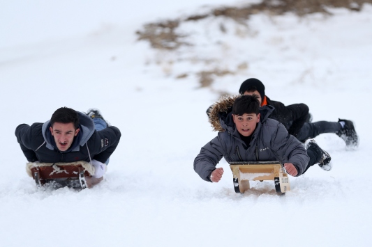 Bazı ziyaretçiler kızakla kaymayı tercih ederken, gondol altındaki pisti kullanan kayakseverler ise snowboard ve kayak takımlarıyla kaymanın heyecanını yaşadı.