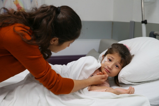 Hastaneye getirildikten sonra 14 saat içerisinde nakil yapılan Esmanur ile kızına karaciğer dokusunu veren anne, taburcu olacakları günü bekliyor.