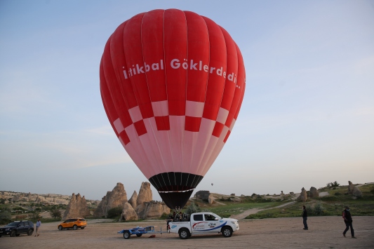 Yeni tip koronavirüs (Kovid-19) tedbirleri kapsamında Sivil Havacılık Genel Müdürlüğünün aldığı kararla mart ayından beri balon turu gerçekleştirilemeyen bölgede, yerli sıcak hava balonu alınan özel izinle uçuş yaptı.