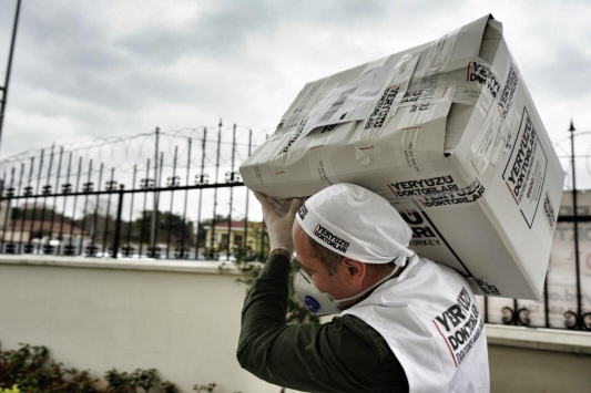 "Her zaman ihtiyaç sahiplerinin yanında olan halkımız, şimdi de ne hastanedeki hastalarını unutuyor ne mahallesinde, apartmanında desteğe ihtiyacı olanları. Biz de emanetleri yerine ulaştırmaya devam ediyoruz. Şu an birçok hastaneden aranıyoruz. Hastalara bu kitleri ulaştırmamız isteniyor. Bunlarla birlikte kitleri alan hastalardan da çok güzel geri dönüşler alıyoruz. Onlara yalnız olmadıklarını hissettirebiliyorsak ne mutlu bizlere. Şimdi daha çok destekle daha çok hastaya ulaşmayı hedefliyoruz ve diyoruz ki halkımız evlerinde kalarak hem koronavirüsten korunabilir hem de evlerinden iyilik bulaştırabilir."