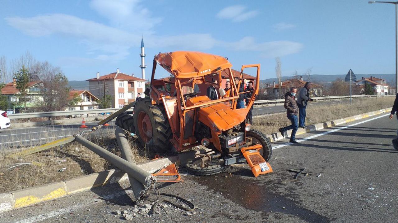 D-100 kara yolunun Yeniçağa kesiminde 84 yaşındaki Seyit Ahmet Kaya idaresindeki traktör, aynı yönde seyreden N.D.'nin kullandığı yolcu otobüsüyle çarpıştı.