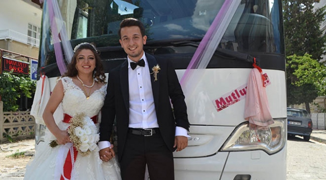 Gelin Ebru Türkay ise, otobüsü gelin arabası yapma fikrine sıcak baktığını belirterek, "Eşimin fikrine saygı duydum, hevesi varmış. İlginç bir anı oldu" diye konuştu.