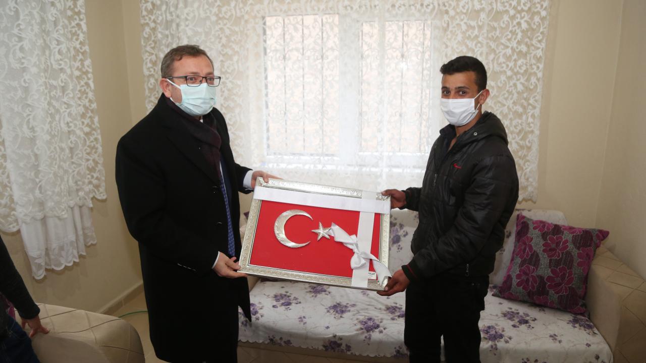 Vali Polat, öğrencilere Türk bayrağı hediye etti.